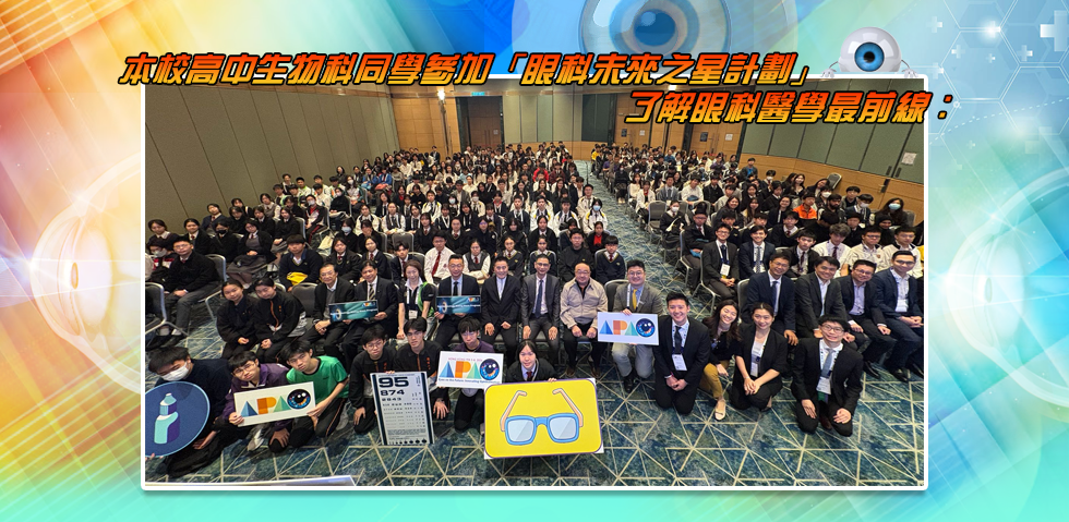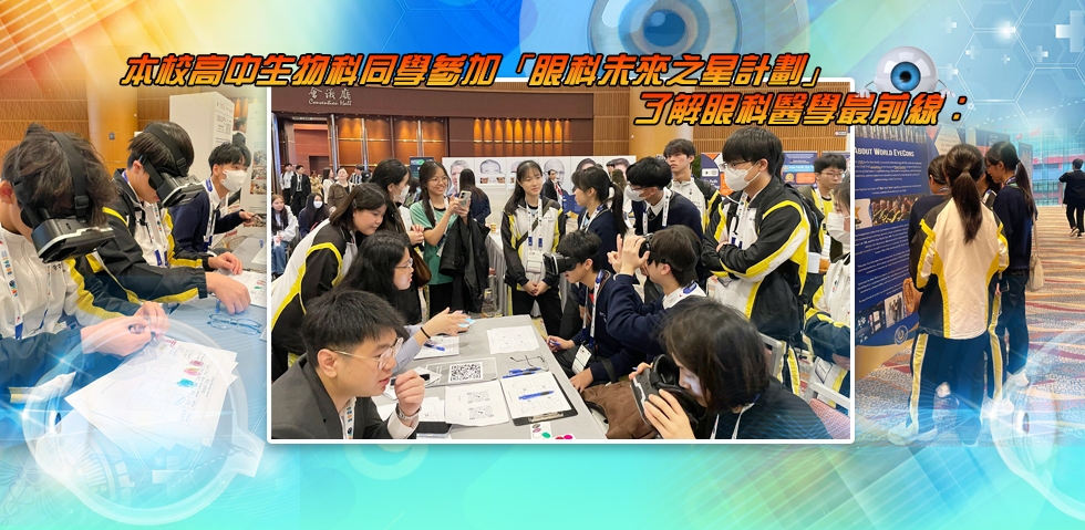 2026年2月7日(星期六),校長帶領一眾高中修讀生物科的學生,前往香港會議展覽中心,參加由教育局商校合作計劃2025/26及香港眼科學會合辦的「眼科未來之星計劃」。同學深入了解各類眼疾及最新治療方法,同時認識香港在相關研究領域的最新成果。