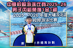 中學校際游泳比賽2025-26男子丙組榮獲1金1銀