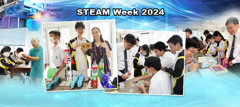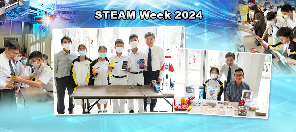 為配合全球的教育趨勢,本校一直致力推動STEAM教育,以裝備學生應對社會及全球因急速的經濟、科學及科技發展所帶來的轉變和挑戰。學校STEAM教育委員會於5月17日至5月24日舉辦STEAM Week,藉此提高本校同學對STEAM各學科的興趣及知識。本年度STEAM Week的活動內容包括:STEAM網上常識問答比賽、「資訊素養知多少」問答遊戲、數學智力攤位遊戲、鎖匙扣製作工作坊及STEAM成果展覽。同學表現十分投入及積極參與,各項活動均完滿舉行。