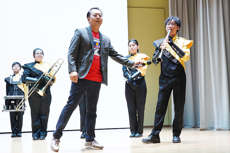 活動當天,樂團在音樂總監鄭子雄先生的帶領及指揮下,為同學展示極具視聽效果的音樂步操,當中亦不乏各種樂器的介紹及簡單示範,過程簡潔明快,極具感染力及吸引力,令全場師生擊節讚賞,大開眼界。
