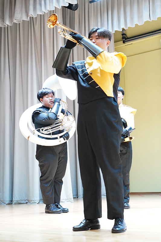 學校於試後活動期間,特意邀請香港少青步操管樂團蒞臨為同學介紹這個特別的制服團種。此樂團是一項結合步操與樂器演奏的戶外表演和比賽方式,當中涉及的樂器主要包括銅管、木管和打擊樂器。樂儀隊演奏者身穿仿軍事風格的制服,亦包括筒狀軍帽、遮陽帽、手套、肩帶和斗蓬等配件,整隊樂團陣型井然,極具氣勢。