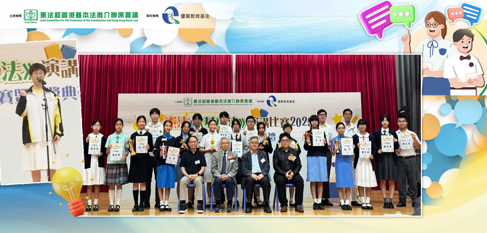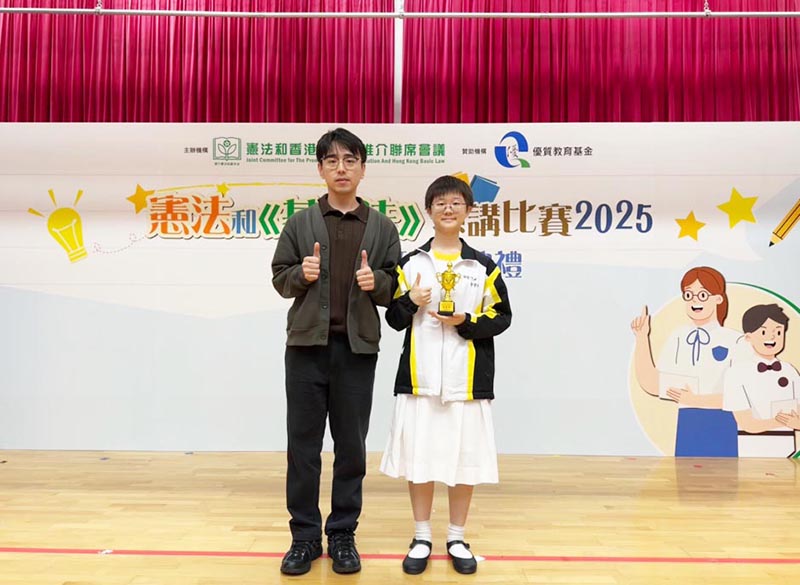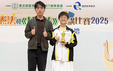 透過是次比賽,蔡同學不僅展現了演講才華,更主動思考並探究《基本法》與日常生活的緊密關係,加深了對法治及守法精神的認識。