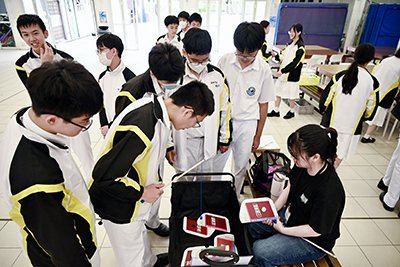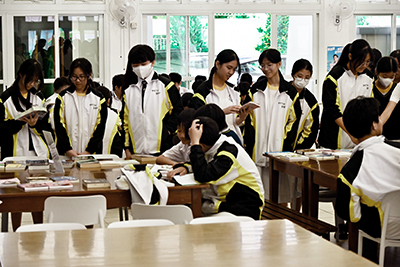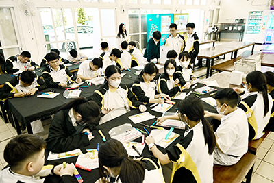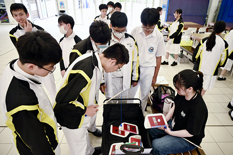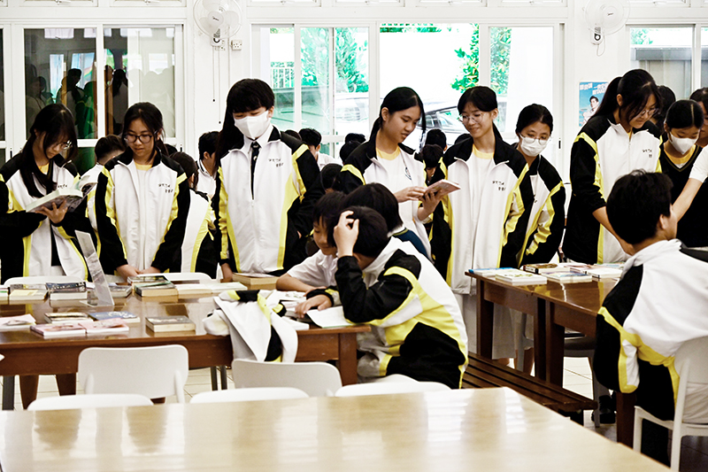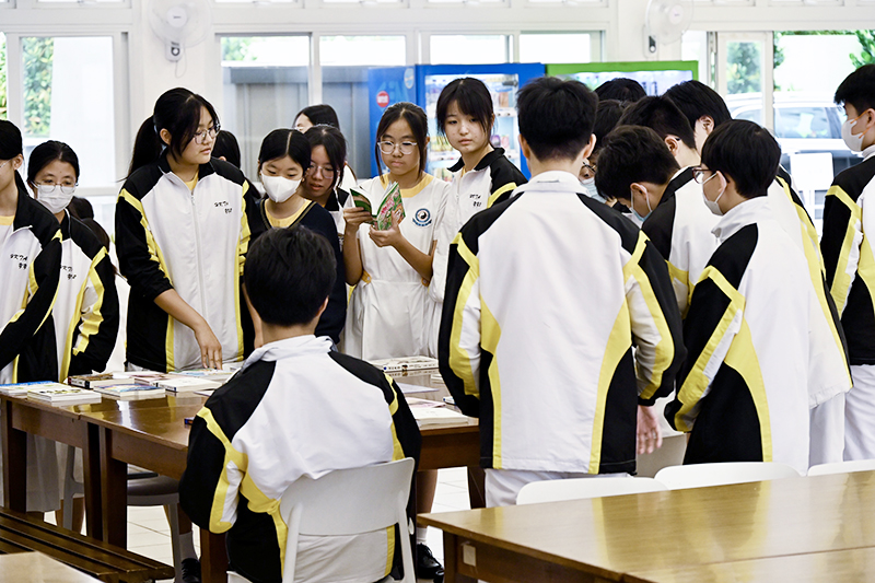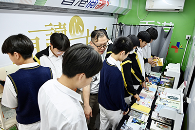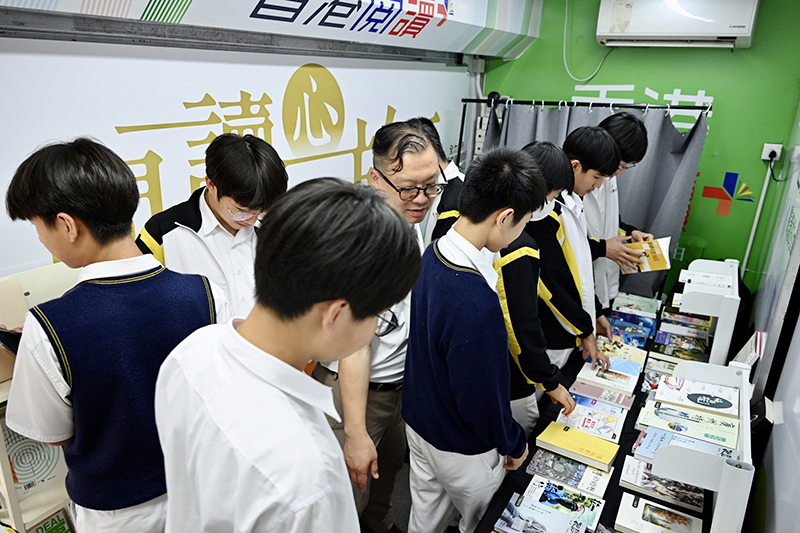 活動當天,滿載好書的漂書車停泊於校園三角亭附近空地,吸引同學駐足瀏覽。圖書館組特別安排了班本參觀時段,讓1B、1C、2A、2E及3E班的同學在老師帶領下,有序地登上漂書車閱讀心儀書籍並參與體驗活動,一同感受閱讀的樂趣!