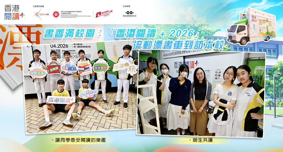 為響應「世界閱讀日」及「香港全民閱讀日」,本校圖書館組於2026年4月14日(星期二)舉辦了「香港閱讀 + 2026」流動漂書車校園活動。是次活動由香港出版總會主辦,透過走進校園的流動書車,為同學帶來嶄新且有趣的互動閱讀體驗。