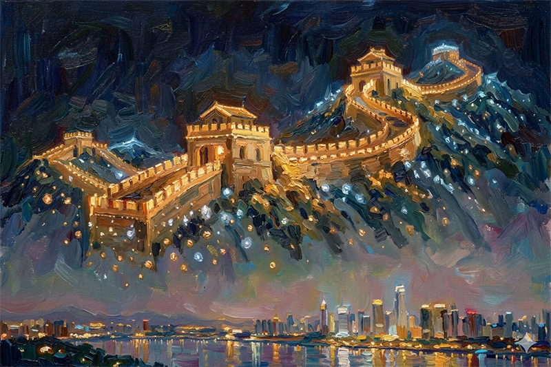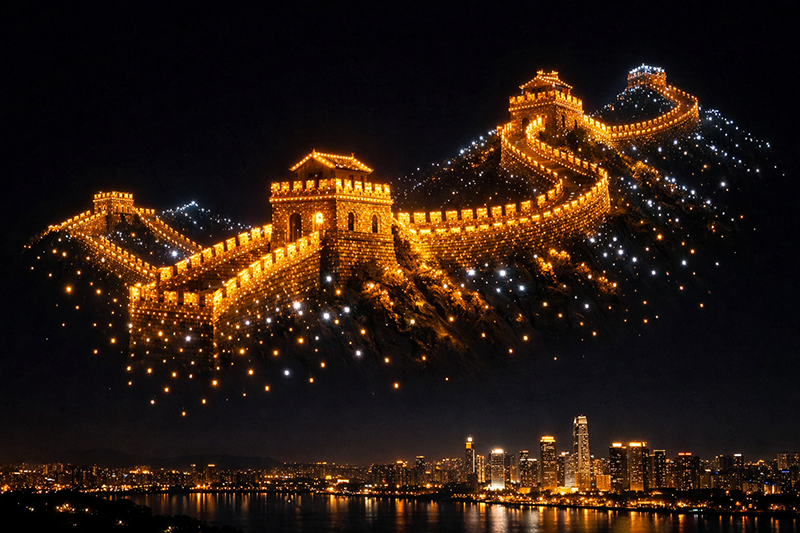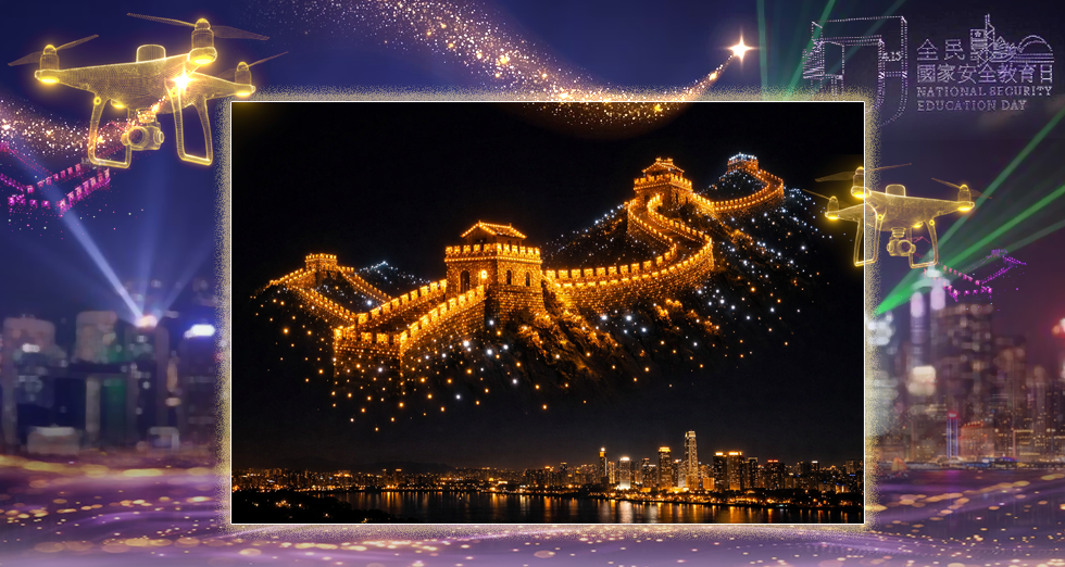 同學的獲獎作品名為《長城萬象》。其設計意念以無人機組成蜿蜒的長城形象,象徵國家安全的堅實防線。長城不僅是歷史遺產,更代表著國家主權與領土完整的守護。圖像中長城環繞著繁榮的城市剪影,表達國家安全是人民安居樂業的根本保障。這寓意香港在「一國兩制」的制度優勢及長城的庇護下,能保持繁榮安定,展現出維護政治及國土安全的重要性。