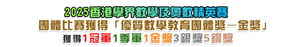 早前本校共有14位同學參加由「香港兒童數學協會」舉辦的「2025香港學界數學及奧數精英賽」,比賽日期為2025年12月7日。本校在是次團體比賽中獲得優質數學教育團體獎–金獎,參賽同學共獲得1冠軍1季軍1金獎3銀獎5銅獎的佳績,獲獎同學包括: