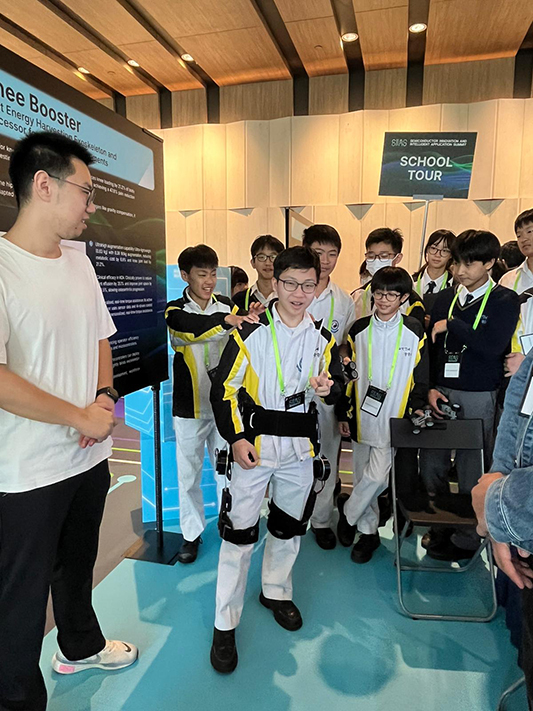 學校一直致力推動STEAM教育,STEAM教育委員會在12月2日帶領2E班學生參與由香港科技大學與SEMI合辦的「2025半導體創新與智能應用峰會 (Semiconductor Innovation and Intelligent Application Summit)」。大會安排了專為中學生而設的工作坊,同學可通過沉浸式體驗,讓他們親手組裝微型電路板,並嘗試將人工智能應用在程式編碼設計中,激發學生對科技的興趣,為香港培育未來的科技人才。會場亦設有創新互動體驗區,展出科大和科大(廣州)科研團隊的成果,包括智能復健機械人系統、新世代AR顯示技術及全集成數字傳感芯片等等,讓同學深入了解多項創新技術,從而得到啟發。