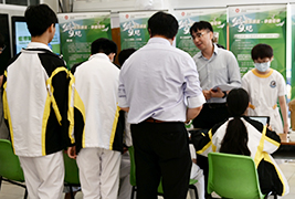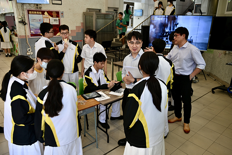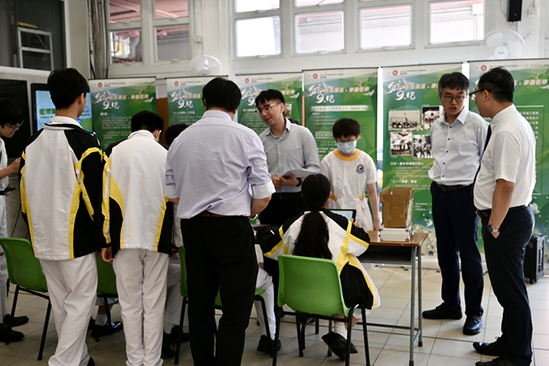 本校國民教育組亦在9月18日小息及午飯期間,於有蓋操場舉行「九•一八」事變展覽。通過展示歷史資料海報及播放短片,讓學生認識侵略戰爭對國家和人民的深遠影響,從而激發學生對國家民族的認同感和責任感,傳承愛國主義精神,為建設強大的祖國貢獻力量。為了深化學生對這段歷史的認知,同時配合電子學習的優勢,校方提供4部載有共12道選擇題的平板電腦,即場測考同學對「九•一八」事變的認識度,答對者會獲得紀念品。現場所見,同學們都認真思考問題,幾乎各級學生均有參與,可見師生們對國家民族有濃厚的認同感、責任感和歸屬感。