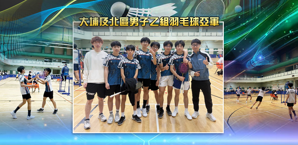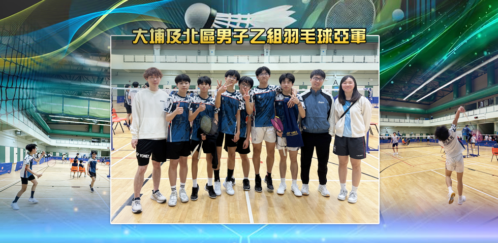 本校男子乙組羽毛球隊於大埔及北區學界羽毛球比賽中勇奪亞軍,獲得佳績,實在是可喜可賀!