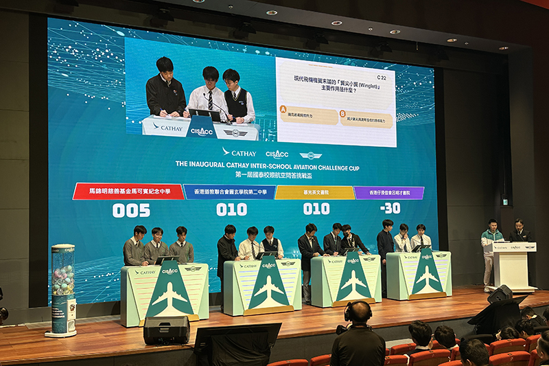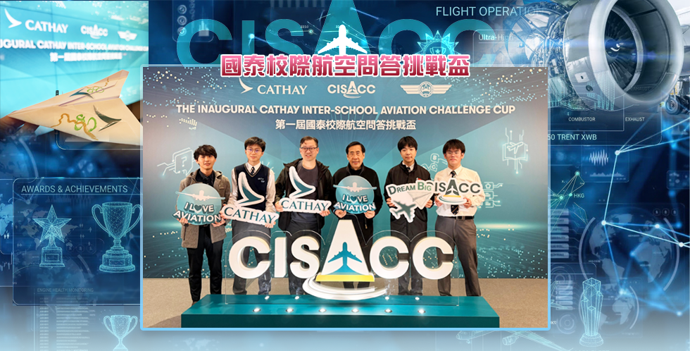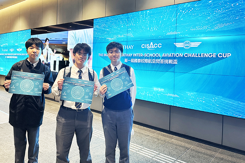 《國泰校際航空問答挑戰盃》於2026年1月25日假香港故宮博物館演講廳舉辦,賽事分為初賽、碟賽和決賽,題目涵蓋基礎航空知識,更包括科技、科學、數學、工程學和通信相關的航空問題,三位同學出盡渾身解數,惜未能進入最後四強,於碟賽止步,獲優異證書 (Certificate of Merit)。