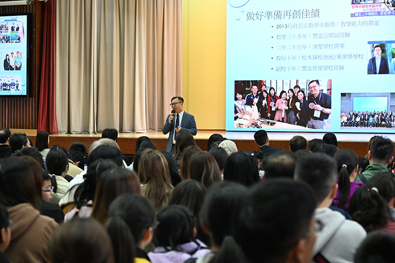 本校日前舉行的中一入學簡介會,共有超過600位區內的小學生及家長參加,坐滿了整個禮堂,說明家長對本校的支持。