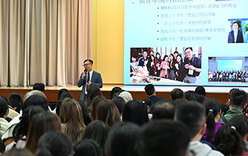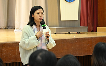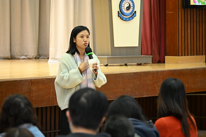 簡介會上除了有楊映輝校長講解學校的辦學特色及選校策略外,還安排了2B壽啟羽家長伍亭勳女士分享感受。伍女士分享了兒子在一年多以來在學業、品德上的成長,並且能在課外活動上盡展所長,所以十分感恩。