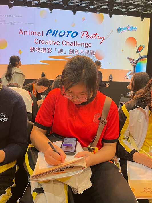 On the 6th of February 2025, ten students took part in the Animal Photopoetry Creative Challenge organized by the Education Bureau at Ocean Park. During this inspiring event, they explored the vibrant habitats and diverse wildlife, capturing stunning photographs of animals like playful sea lions and adorable penguins. Each student combined their images with heartfelt English poetry with reference to their photos to promote 3 of the 12 priority values: Diligence, Filial Piety and Perseverance.